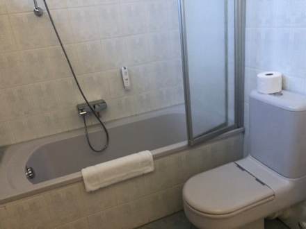 Blick vom Waschbecken auf die Badewanne