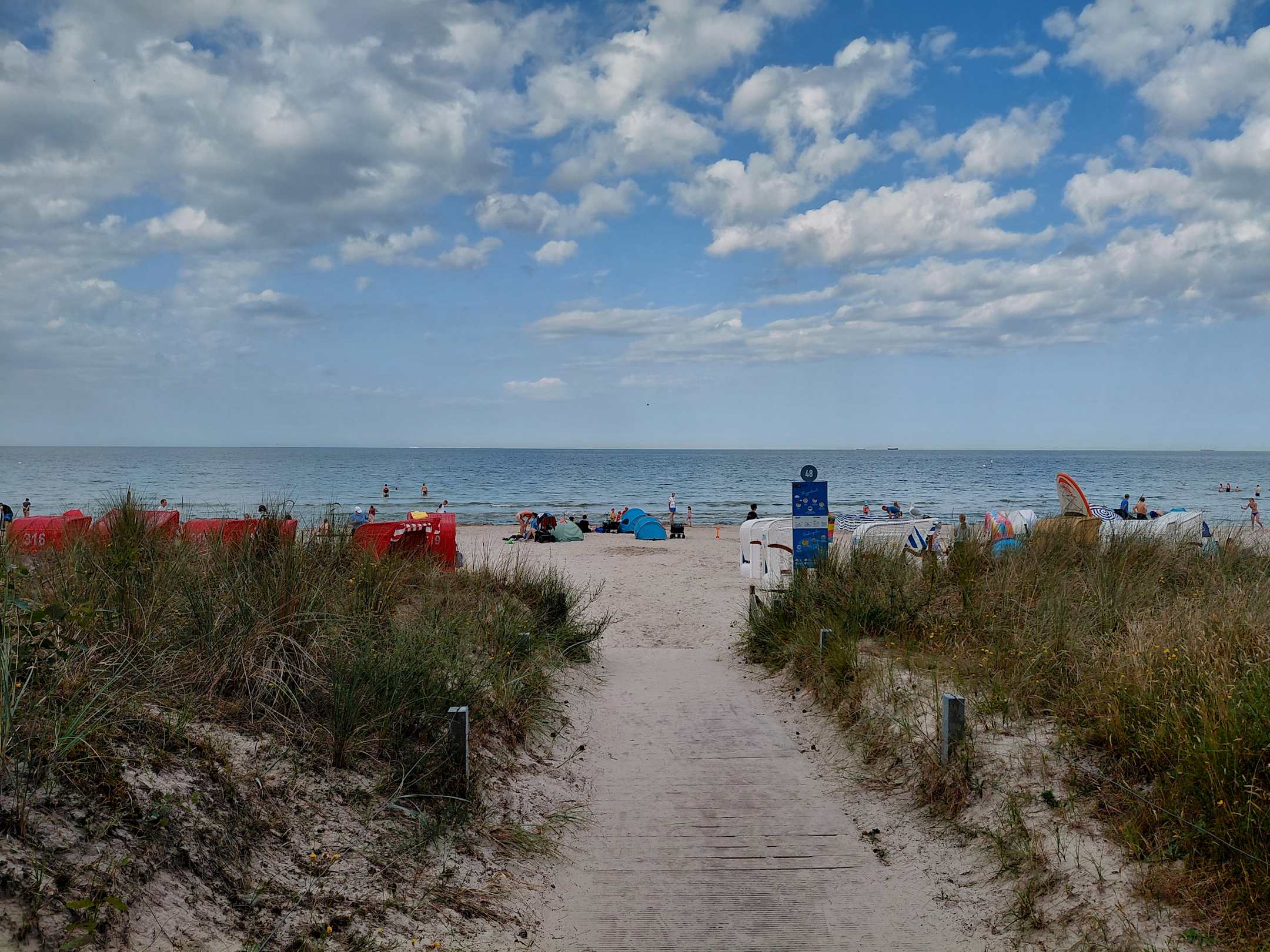 Strandabgang (links die roten Strandkörbe gehören zum Hotel)