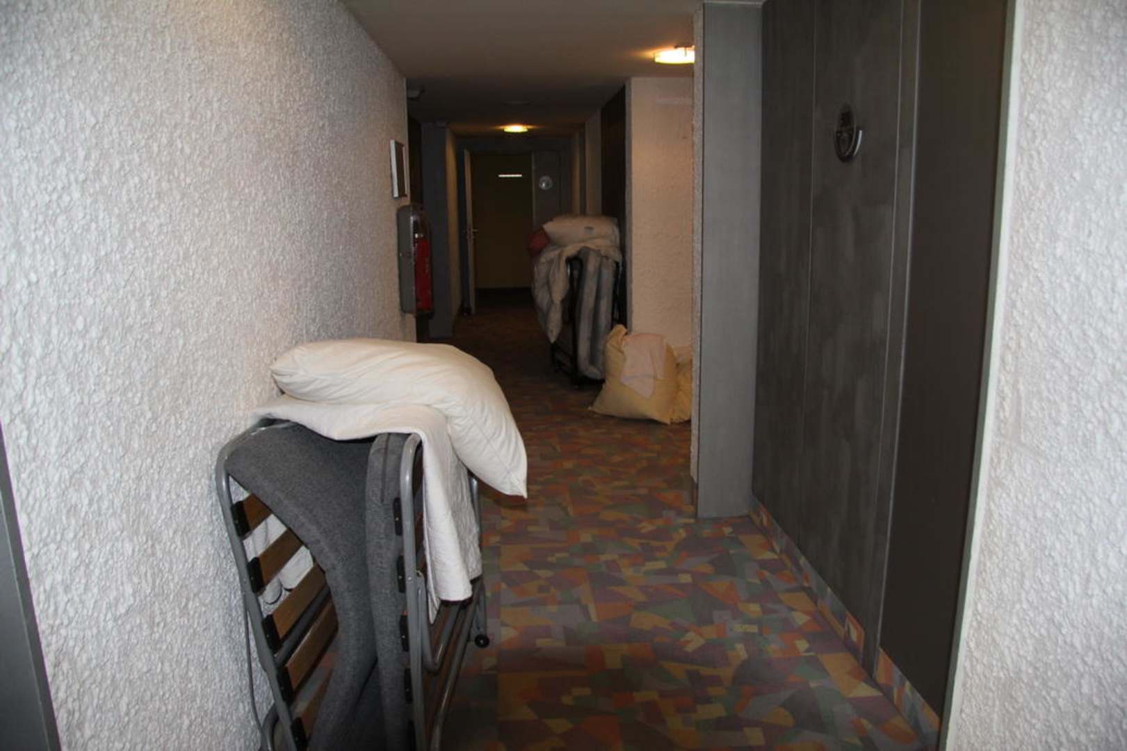 Die Fluchtwege sind zum Einen falsch beschildert (stehen auf dem Kopf - oder mann mus den Kopf drehen) und zum Andren stehen Betten bzw. Säcke mit Schmutzwäsche dort