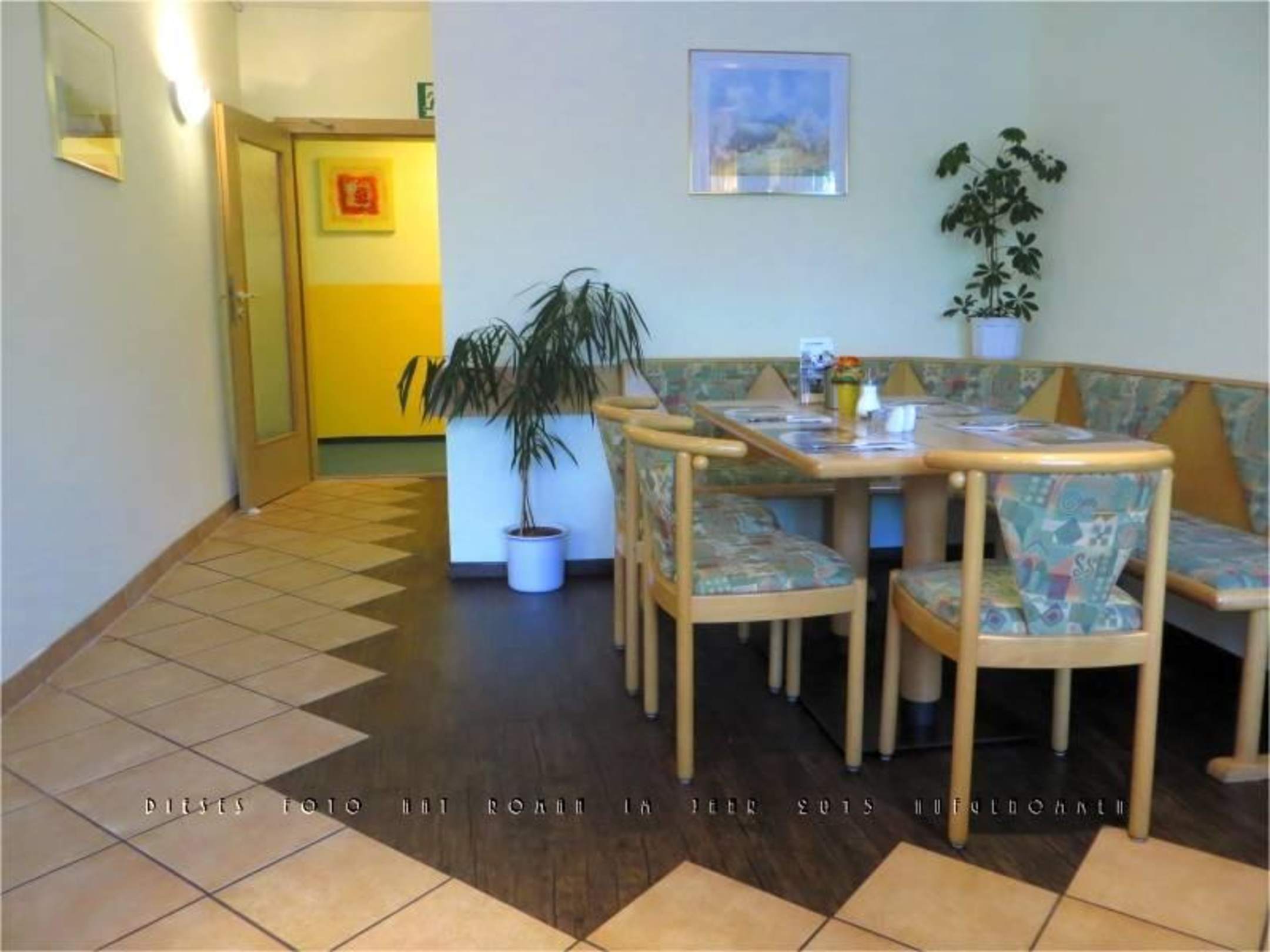 Ausgang des Frühstücksraums mit 6-Personen-Tisch