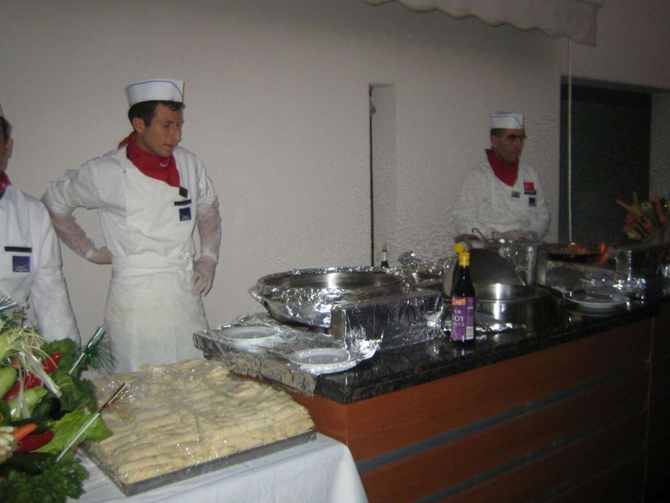 Köche am Buffet die Speisen Friesch zurereiten