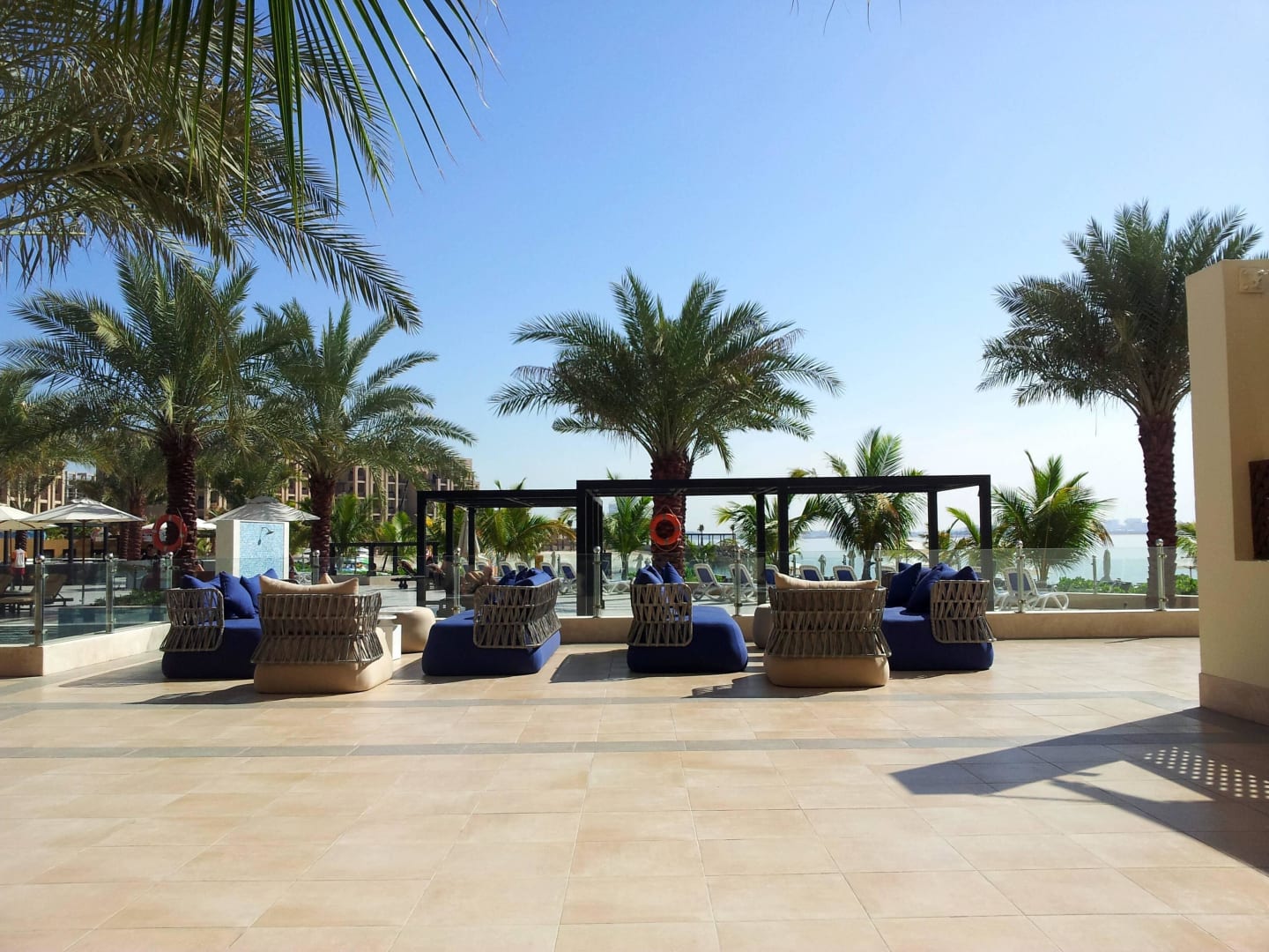 Sitzgelegenheiten oberhalb des Pools