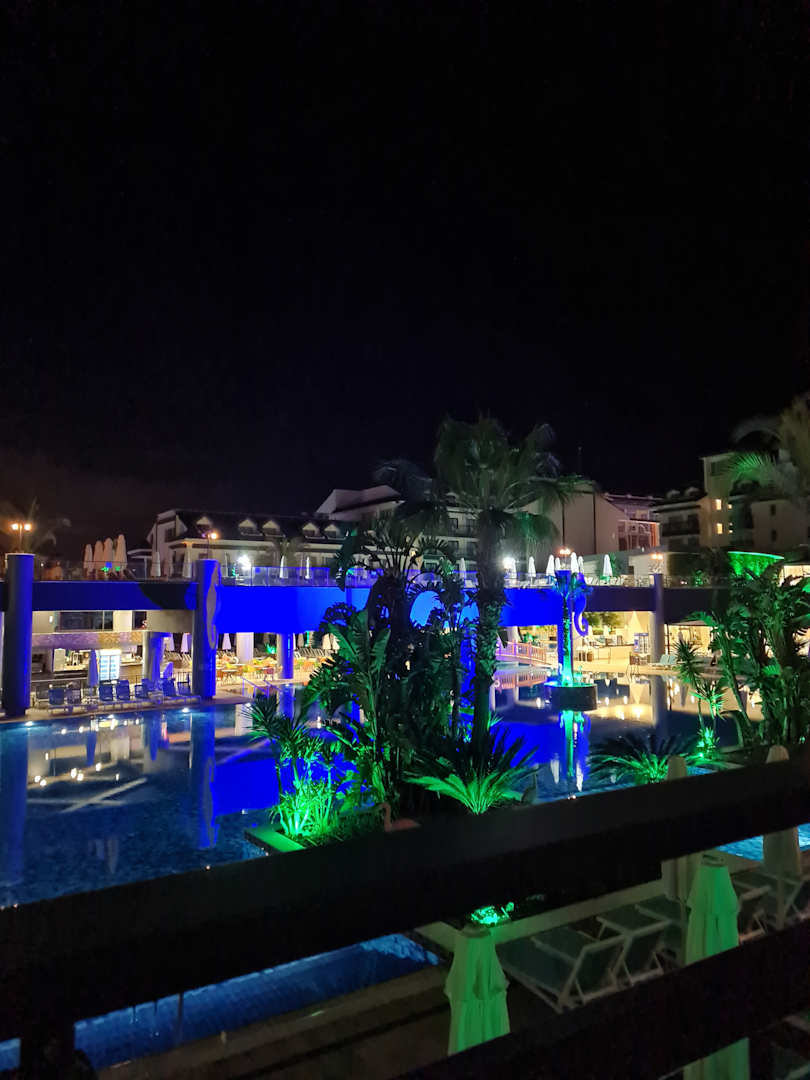Ausblick auf den Pool vom Zimmer