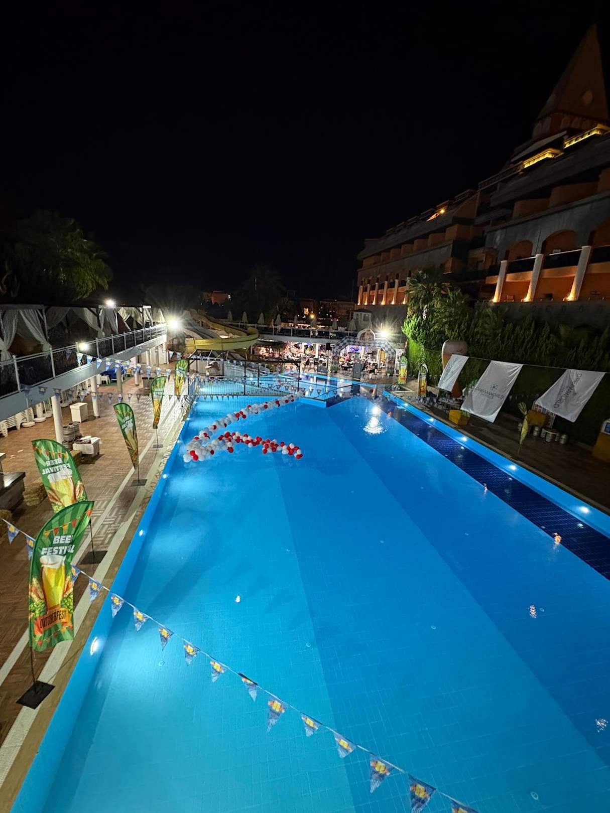 Poolbereich zum Oktoberfest geschmückt