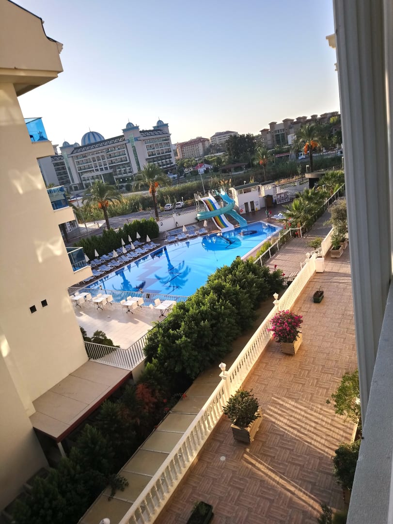 Ausblick von unserem Zimmer auf das Nachbarhotel "Palm Garden"