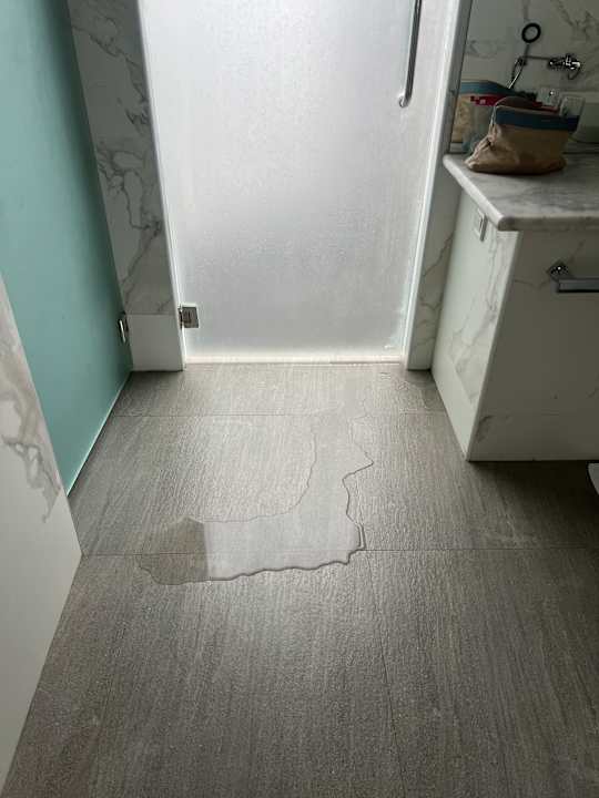 Jeder kleine Schauer überflutet das Bad. Rutschgefahr! Die Glastür knallt bei Wind auf und zu….