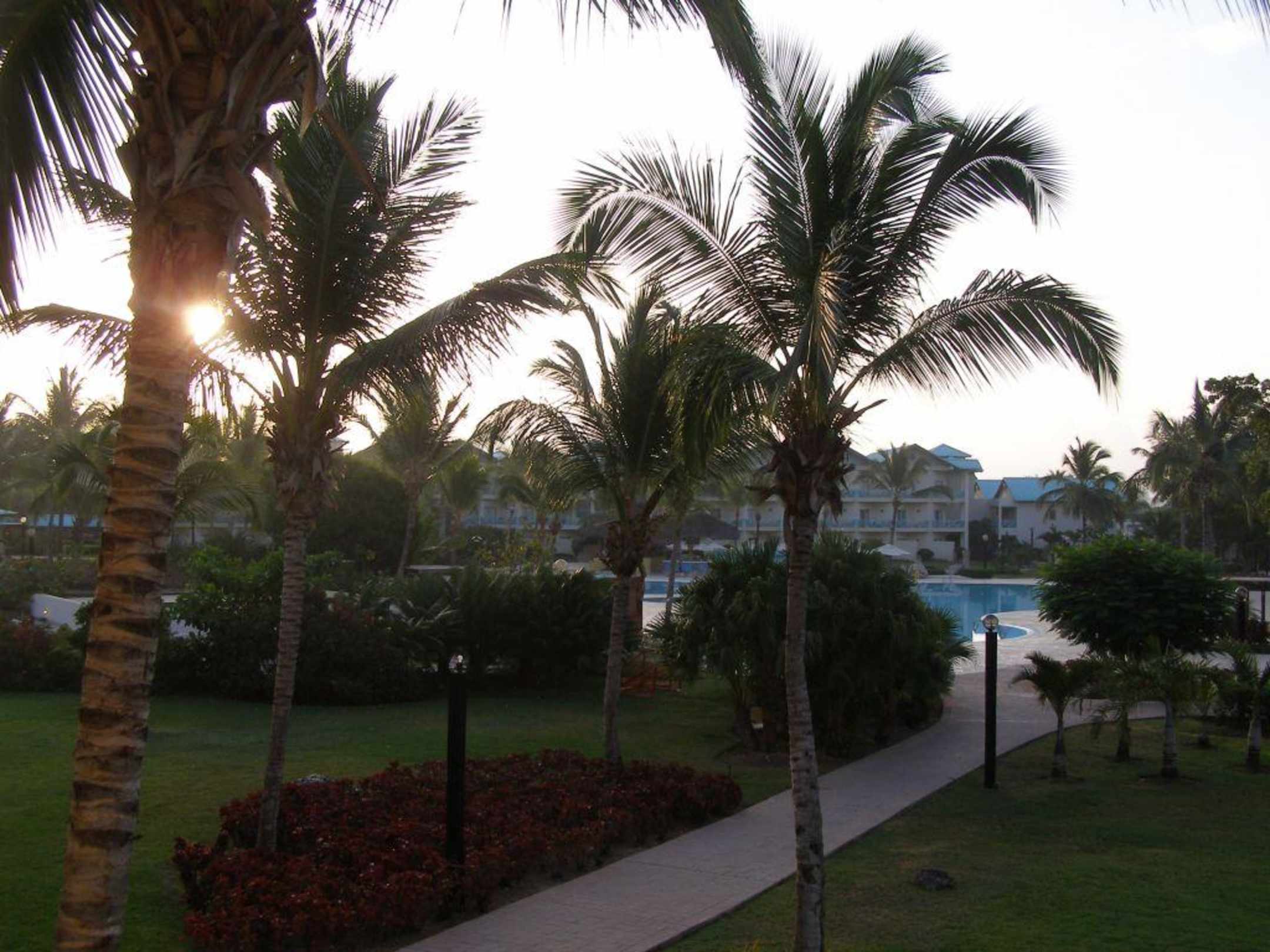 Frühmorgens Blick zum Pool