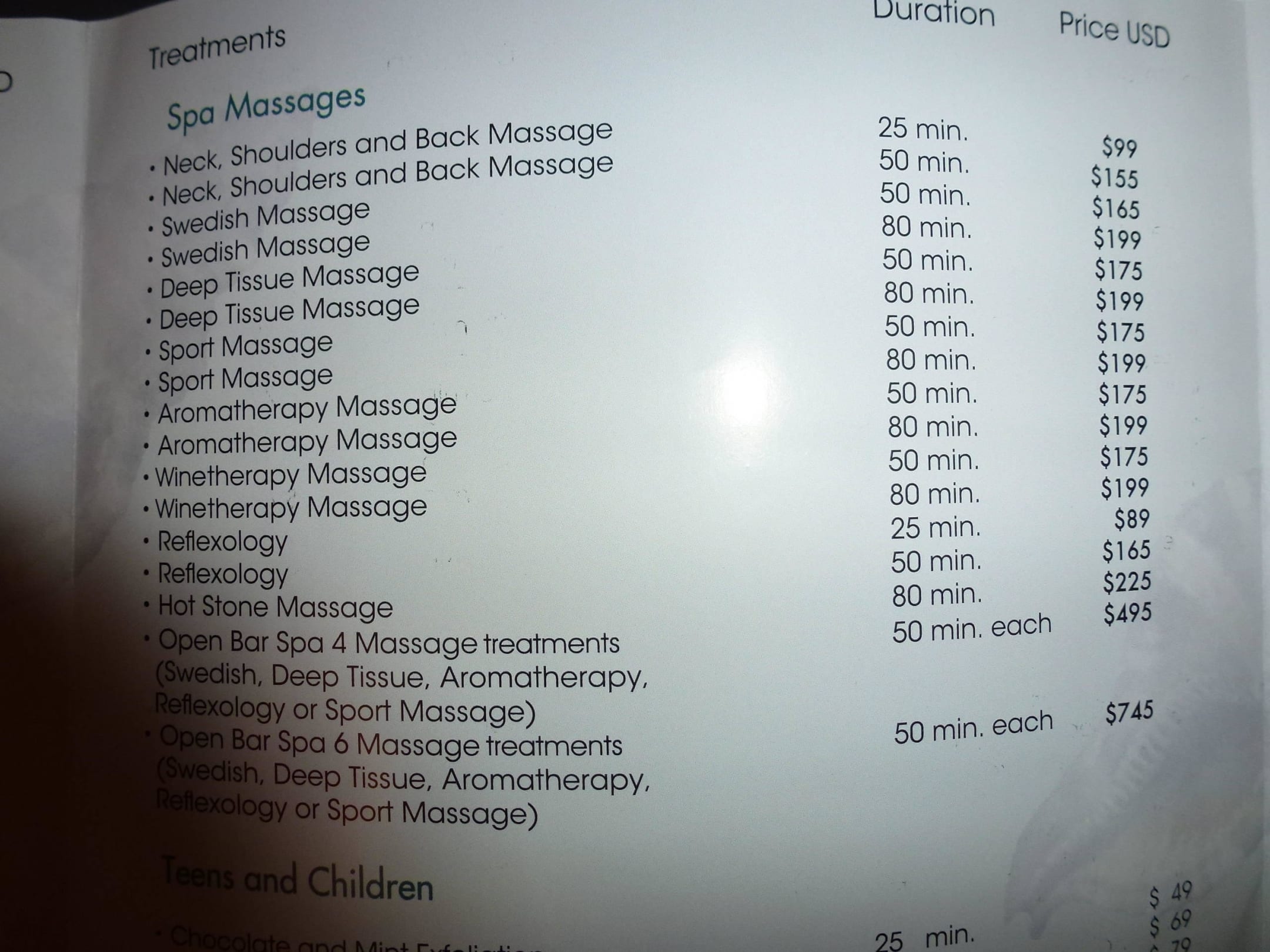 Spa Preisliste