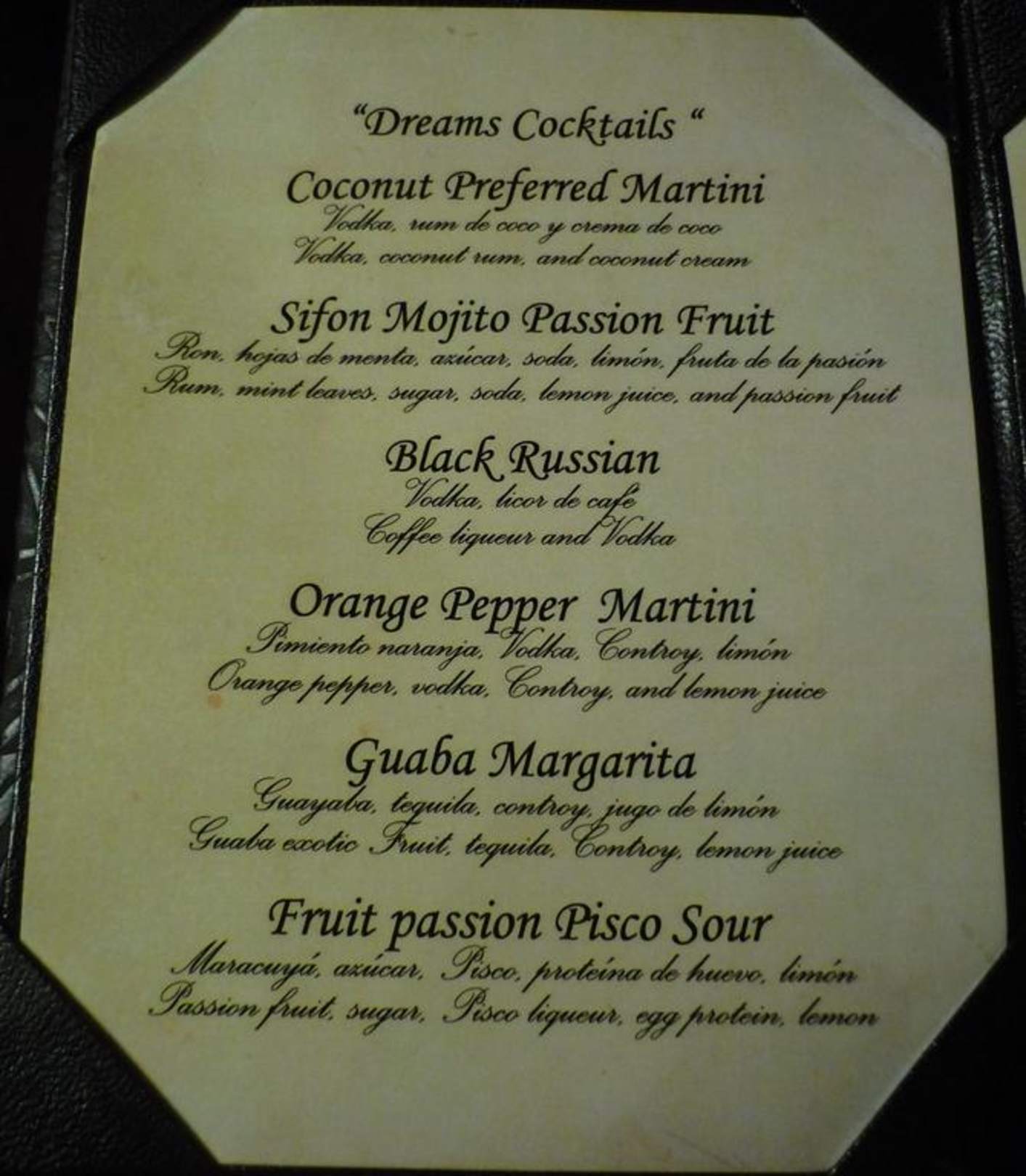 Cocktailkarte Rendezvous Lobby Bar  Dreams Riviera Cancun Resort & Spa