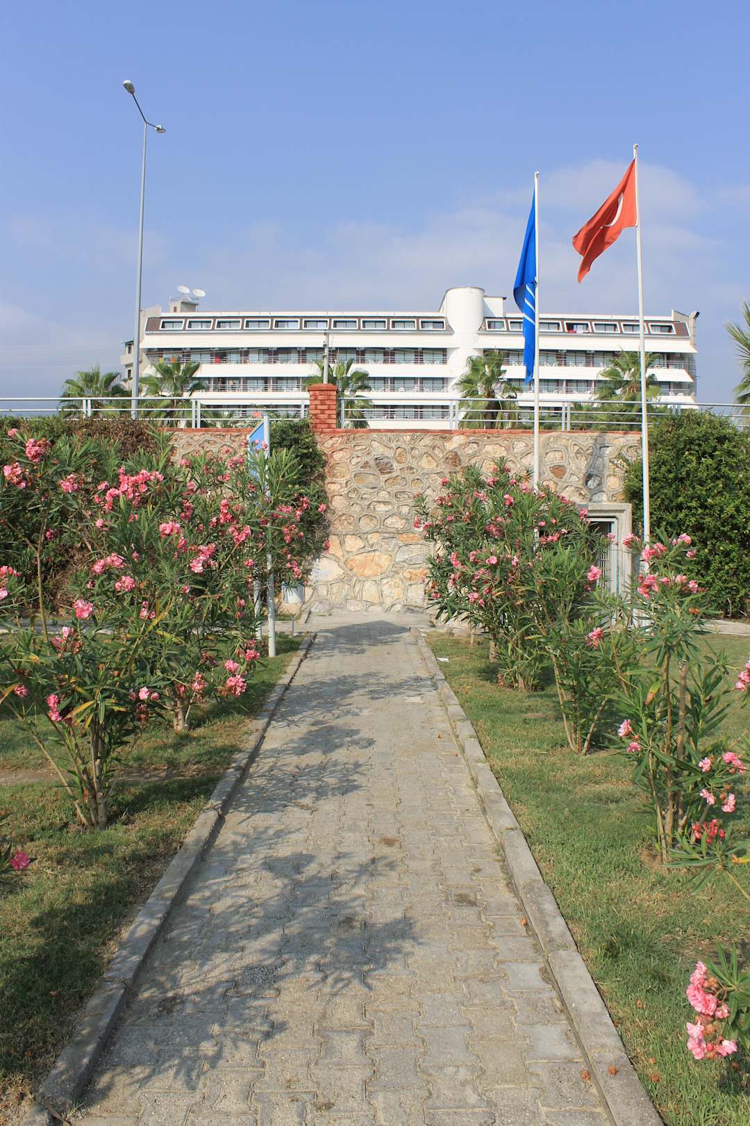 Blick zum Hotel vom Strand, Weg zur Unterführung