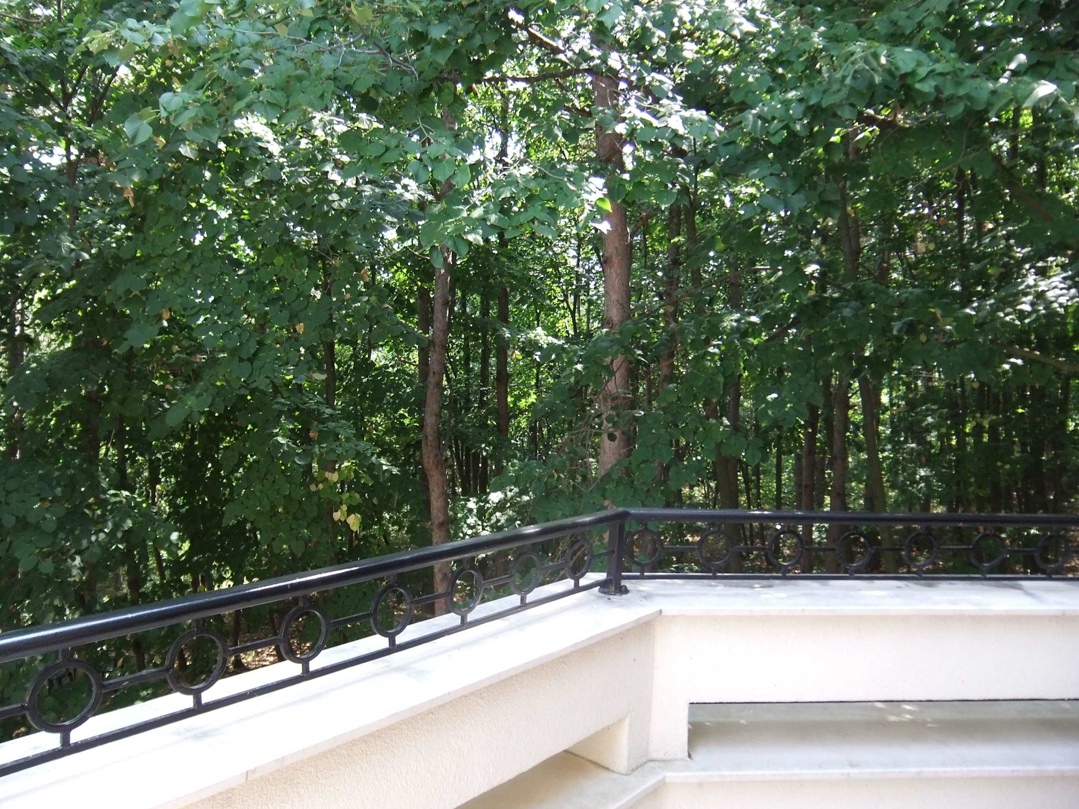 Blick aus Balkon auf Wald Dreibettzimmer