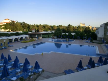Poolanlage im Sonnenuntergang