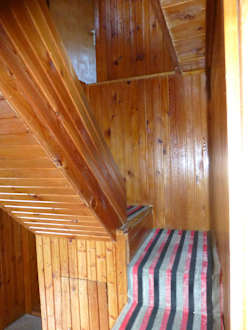 Steile enge Treppe von unten gesehen