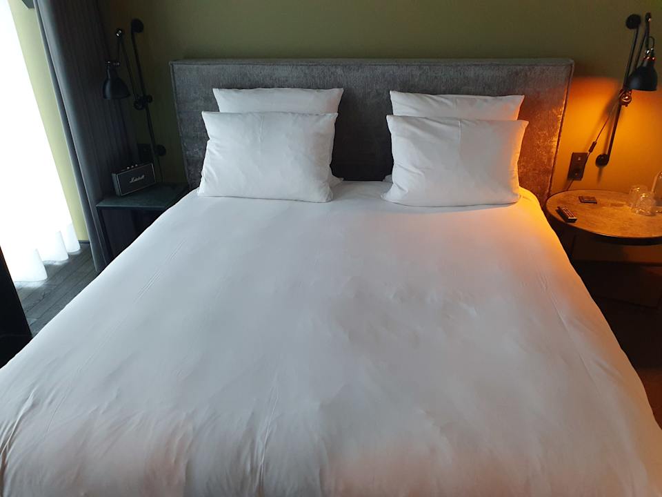der größte Nachteil des Zimmers.Eine Matratze, eine Bettdecke. Leider nichts für uns