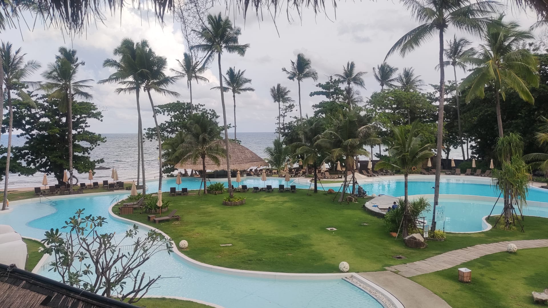 Blick auf den Pool vom Frühstück