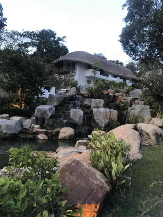 Wasserfall der Teichanlage auf dem Weg zum Restaurant
