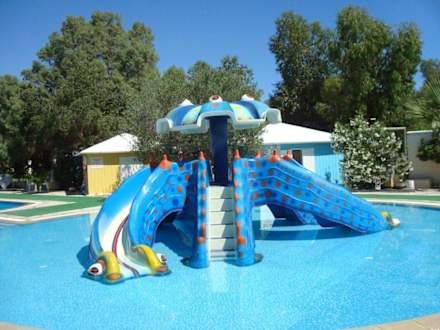 De l'autre côté des jardins, assez loin des bâtiments de chambres, se situe l'Aqua Park avec une piscine géante et des toboggans. Ici, le toboggan tentaculaire des enfants