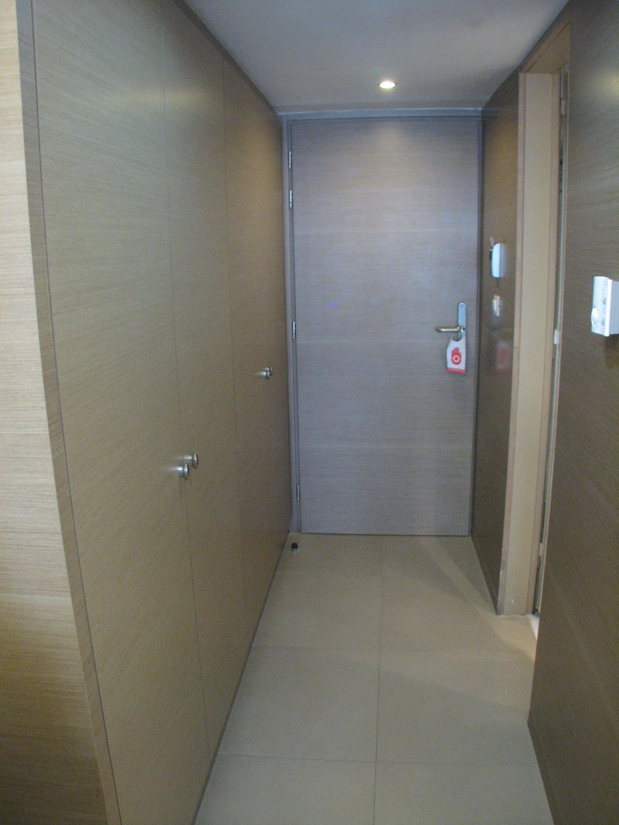 Links sind zwei Schränke. Rechte befindet sich die Toilette.