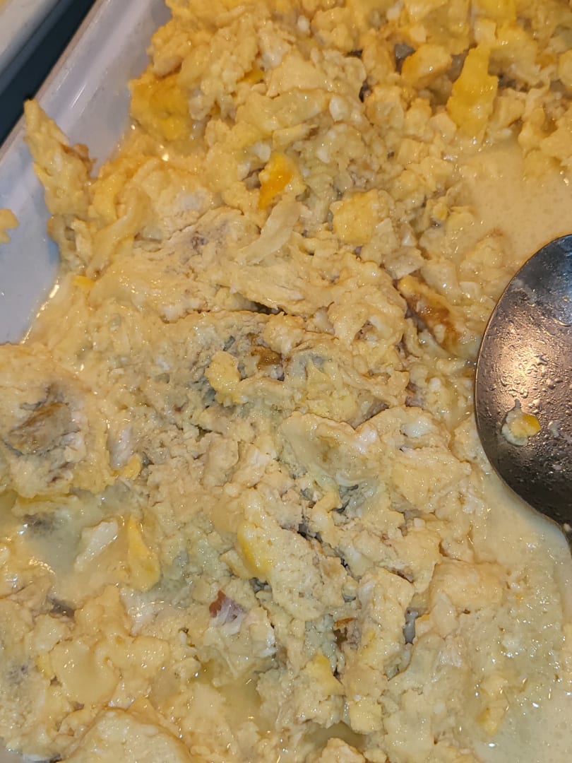 Wir können uns die grüne schwarze Farbe des Rührei nicht erklären. Probiert haben wir es lieber nicht.