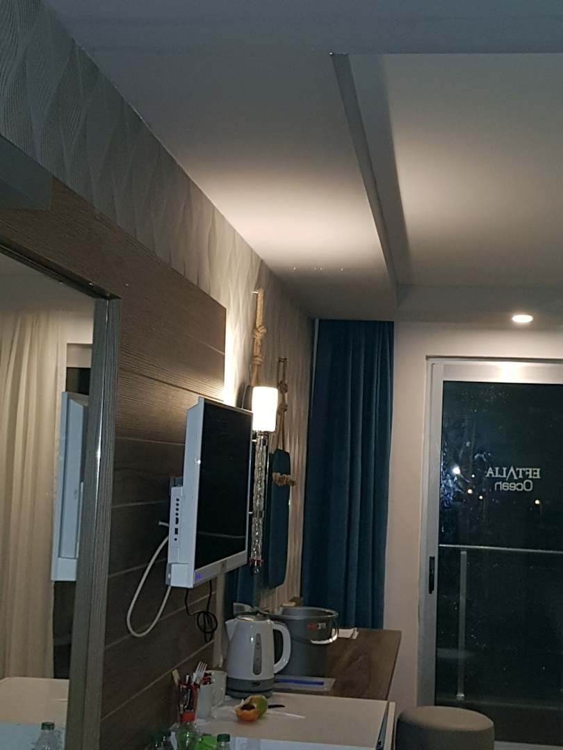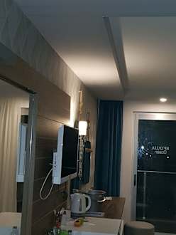 Hier sieht man wie das aus der Decke rein geregnet hat und die ganzen Klamotten nass waren und wie gesagt wir müssen das Zimmer wechseln obwohl das Hotel 5 Monate alt ist