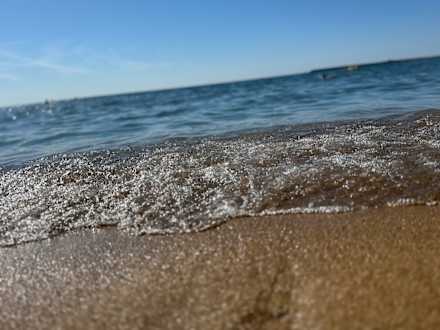 Strand, je nach Abschnitt Felsplatten im Wasser