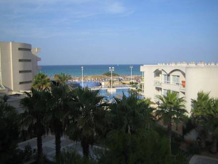 Blick auf Pool und Meer.Blick vom Zimmer 2315 mit fantastischem Panorama über die Bucht, den Pool und den Ort.