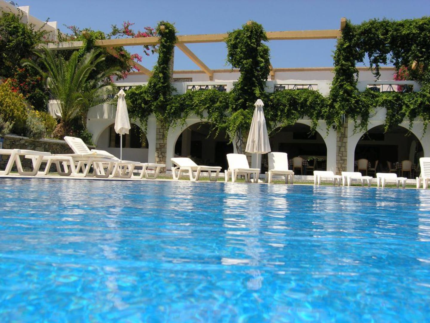 Blick über den Pool in den SpeisesaalBlick über den Pool in den Speisesaal, oberhalb liegt eine schöne Dachterrasse