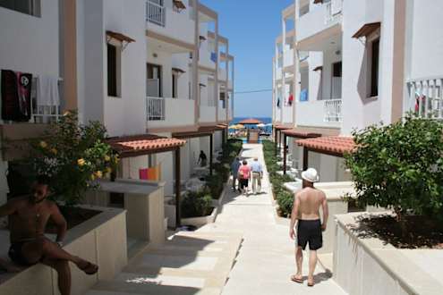 über den Innenhof gelangt man zu den Studios im EG und zum Pool bzw. Meer