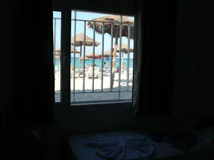 Blick aus unserem Familienzimmer Superior auf den Strand