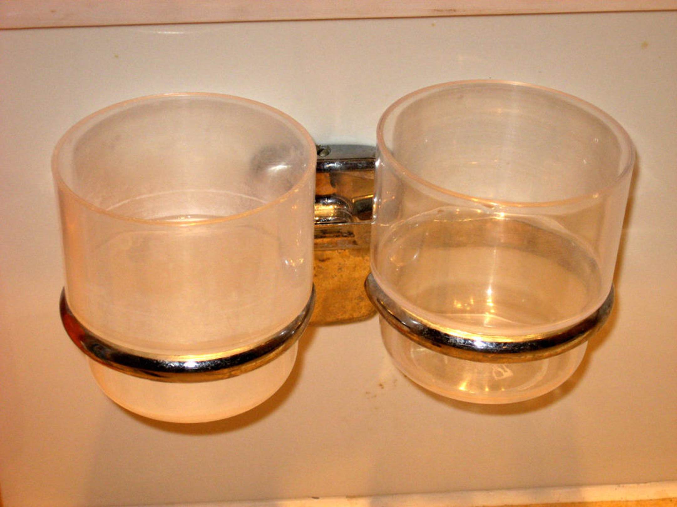 Badkamer2 plastieken glazen volledig versleten en mat (om de tanden te poetsen)