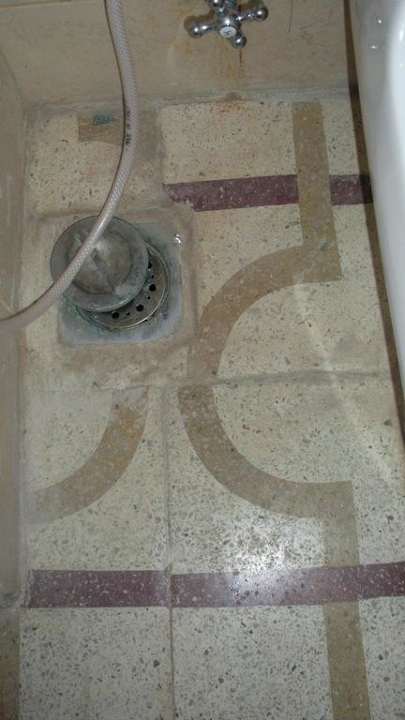 Der Abfluss neben der Toilette war umrandet mit Schimmel