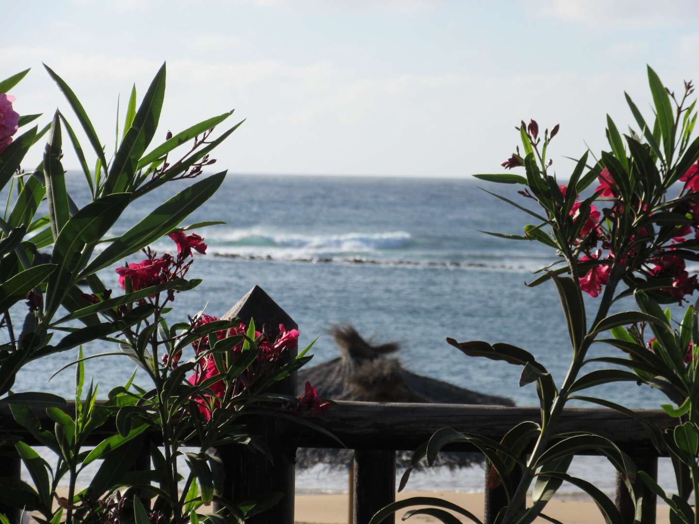 Ausblick von einem Balkon im Innenhofbereich Richtung Strand