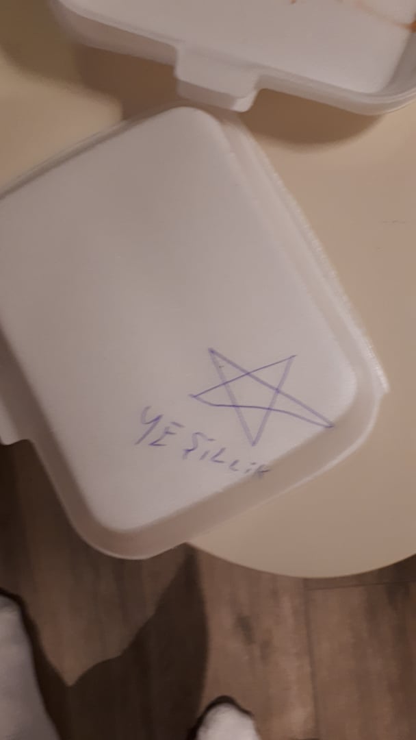 So bekam ich mein Lunch Paket....da es vorher nicht gebracht wurde und ich mich beschwerte wurde es dann mit einem Judenstern markiert . Ich könnte es kaum fassen als ich diese Beleidigung sah. Dieses Hotel ist eine Katastrophe Max.2 Sterne
