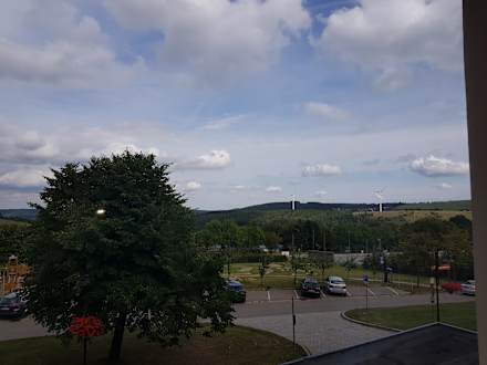 Das ist die Aussicht aus dem Schlafzimmer auf den Parkplatz und den Spielplatz (vom Baum verdeckt).