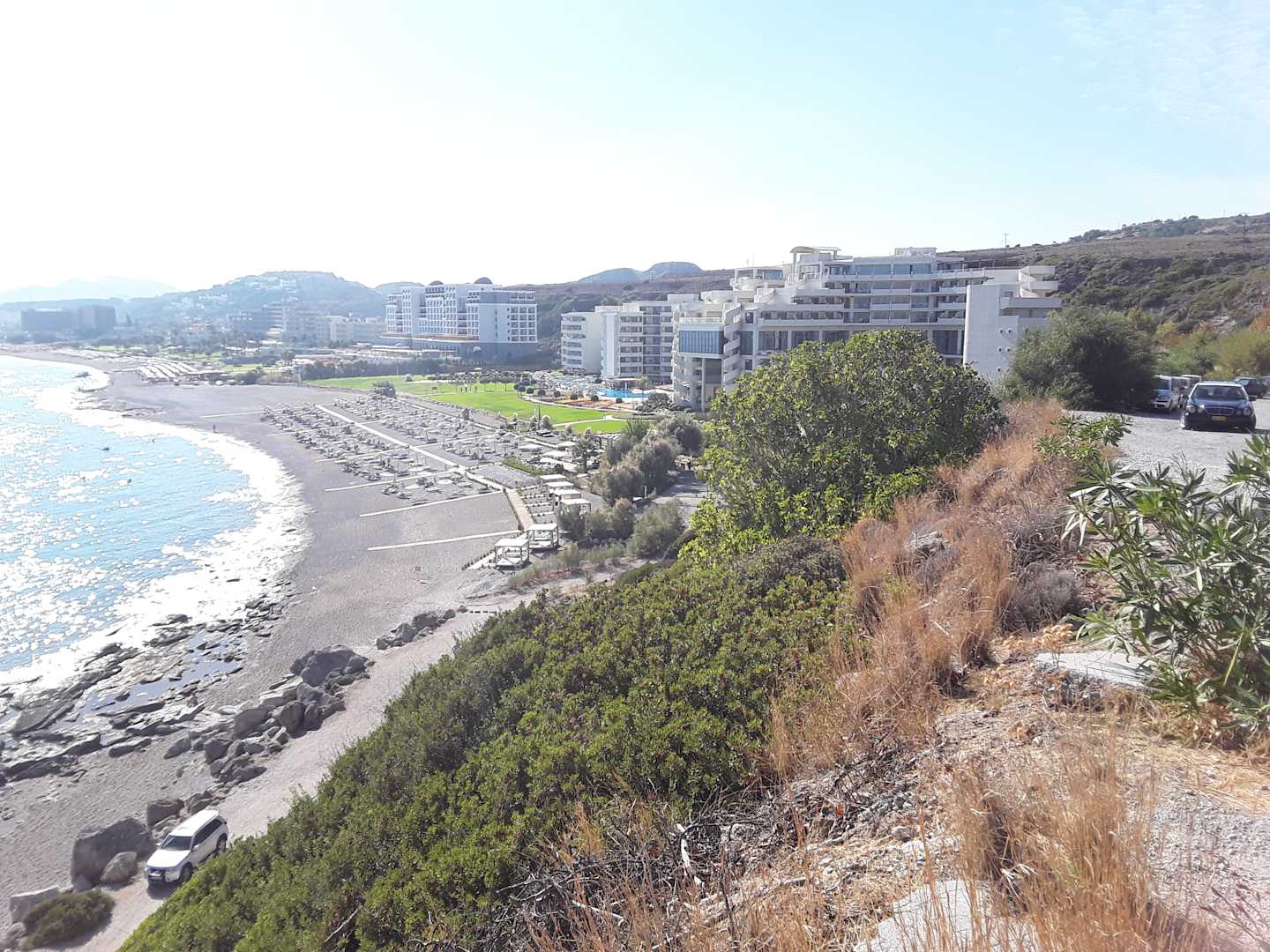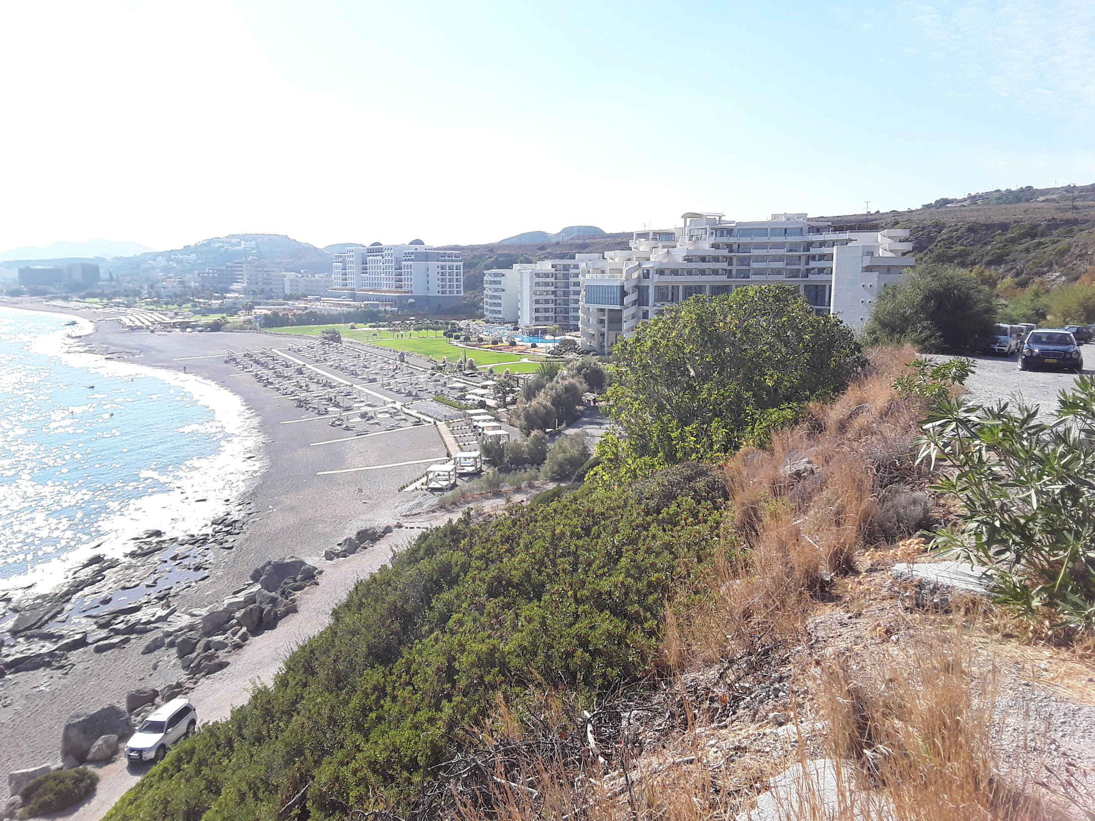Hotel vom Hügel aus und Faliraki-Strand