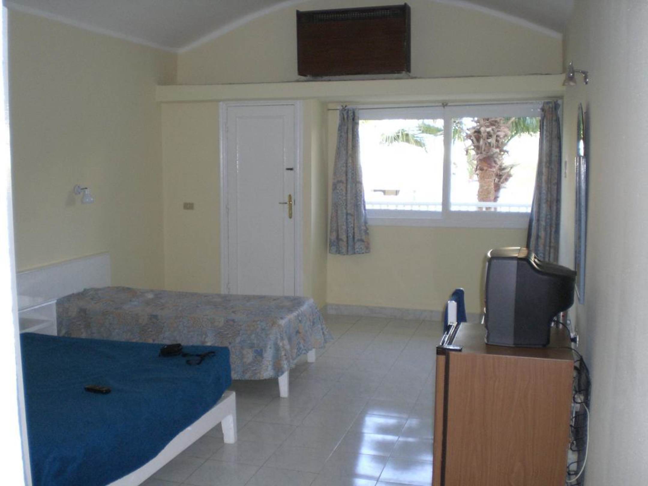 Beachtet den Fernseher auf dem Kühlschrank :-) Klimaanlage ist oben mittig über dem Fenster! Balkon gab es auch!