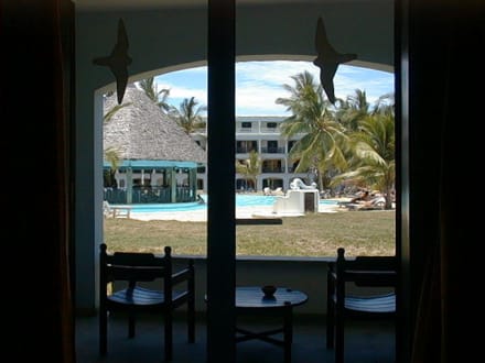 Blick auf den Pool, das Meer ist rechts.
