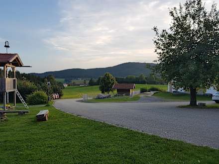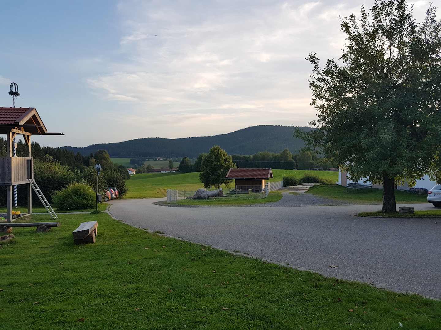 Ausblick von der Hollywoodschaukel auf dem Hof