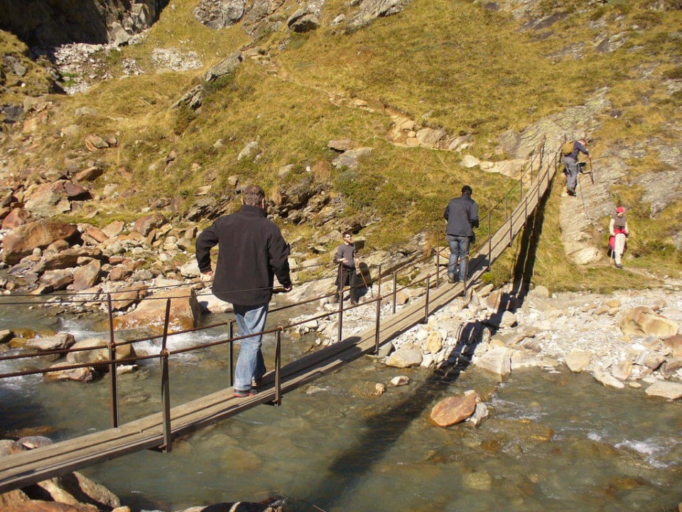 Hängebrücke über den Fluß auf der Hochalm.