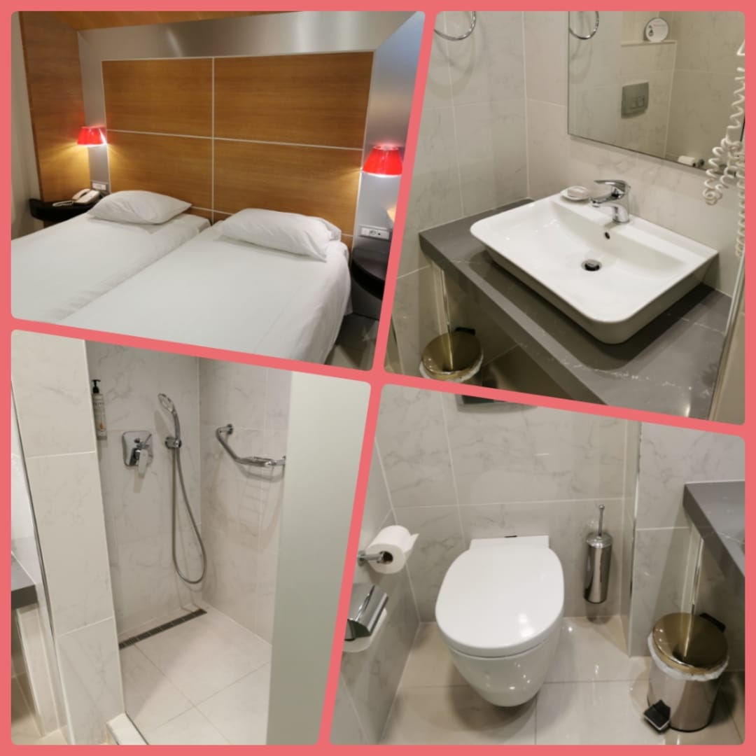 Unser neu renoviertes Zimmer im 7. Stock mit begehbarer Dusche