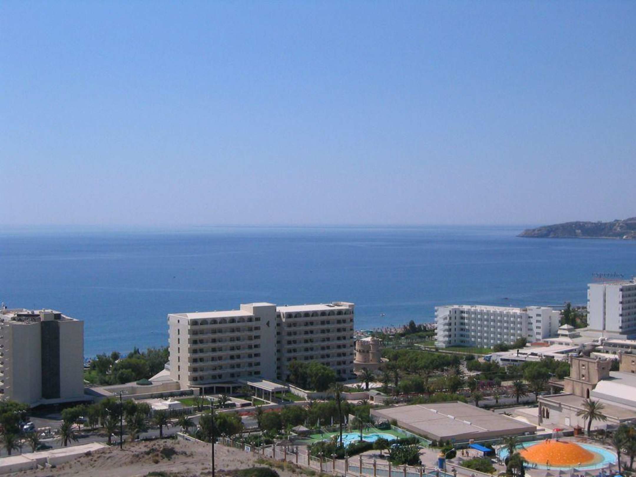 Blick auf das Esperos Palace vom Berg gegenüber des Waterparks