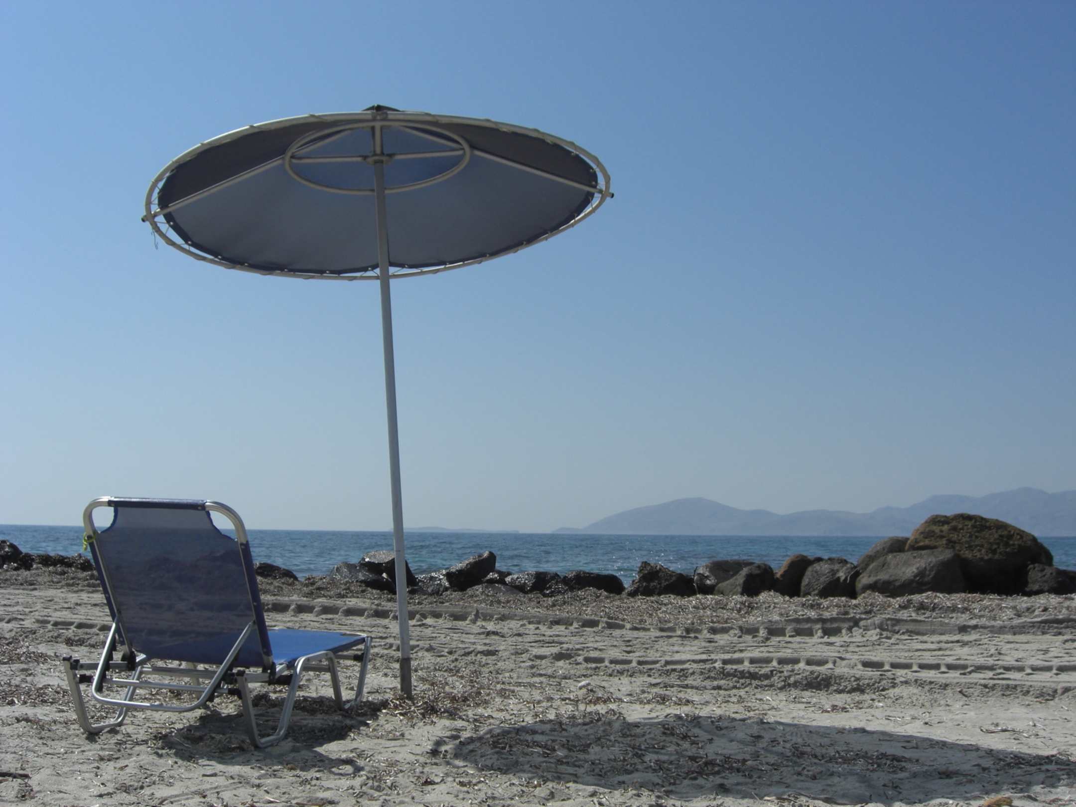 Felsen und Seegras am Strand, aber sehr ruhig