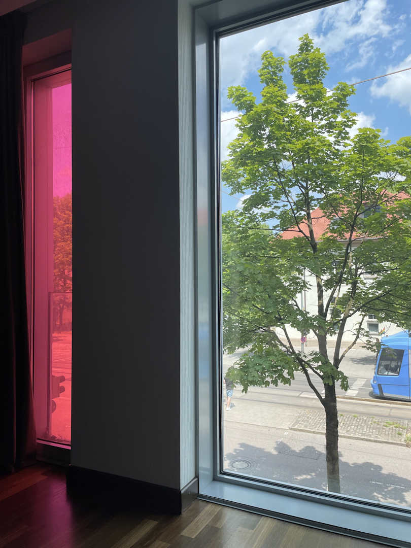 Riesige Fenster, die Vorhänge schließen aber Blickdickt