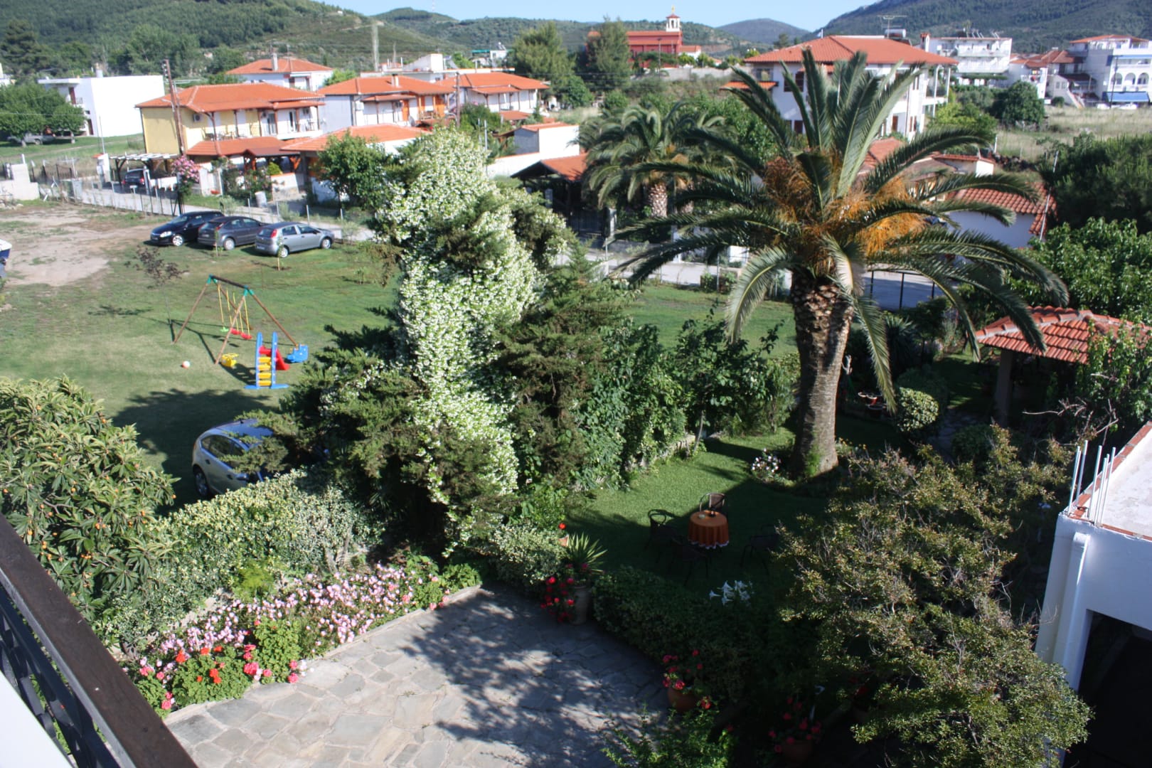 Blick vom Balkon in den Garten