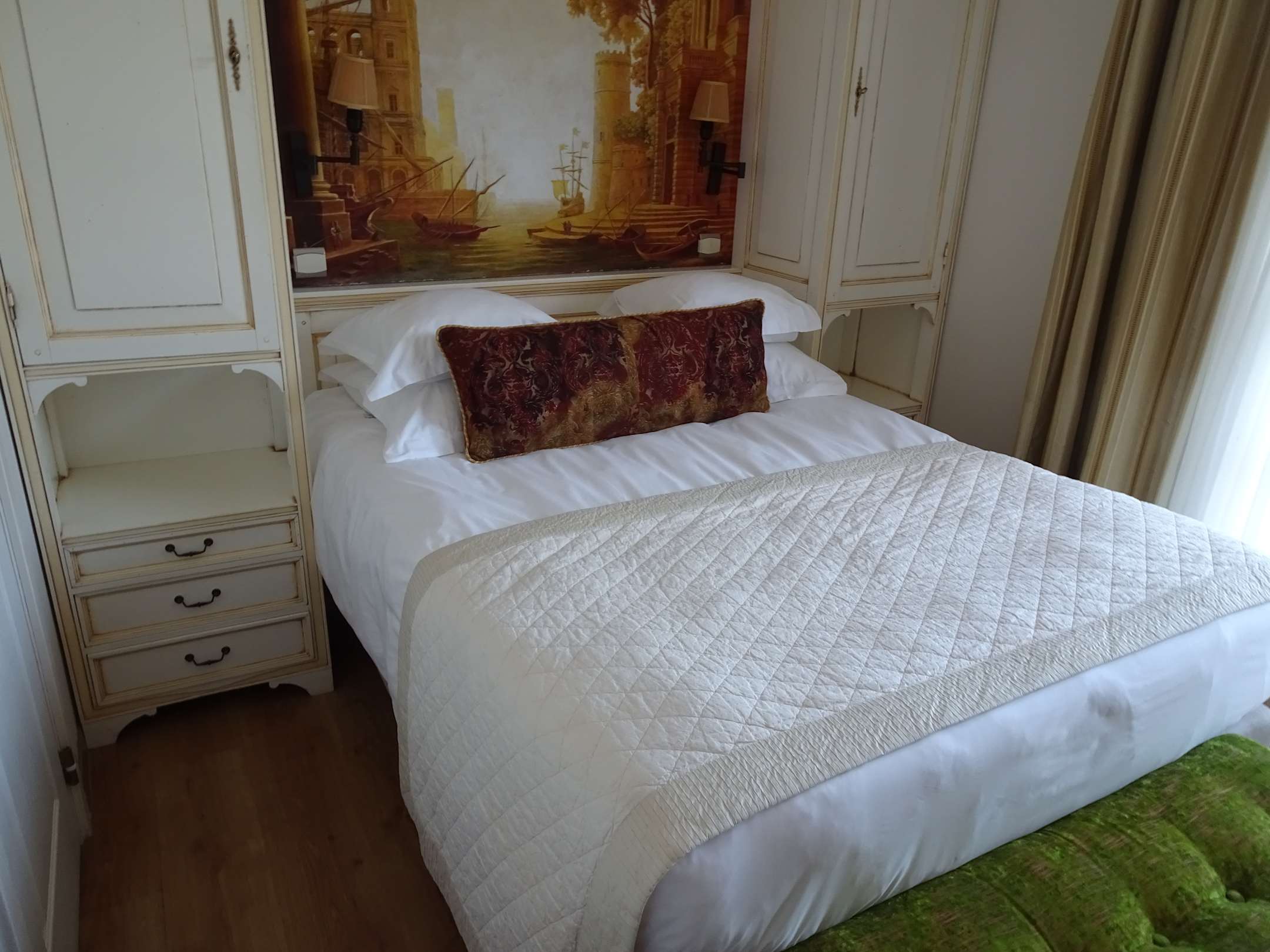 Kleiderschrank ist am Kopfende des Bettes auf beiden Seiten