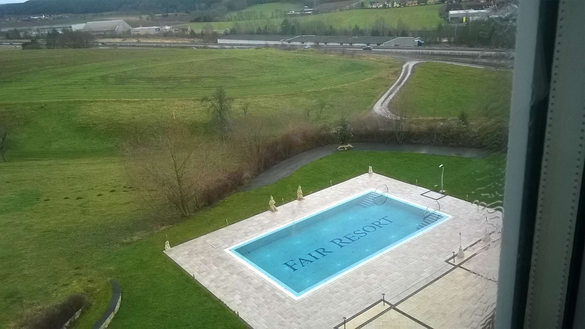 Blick auf den Außenpool aus Etage 5