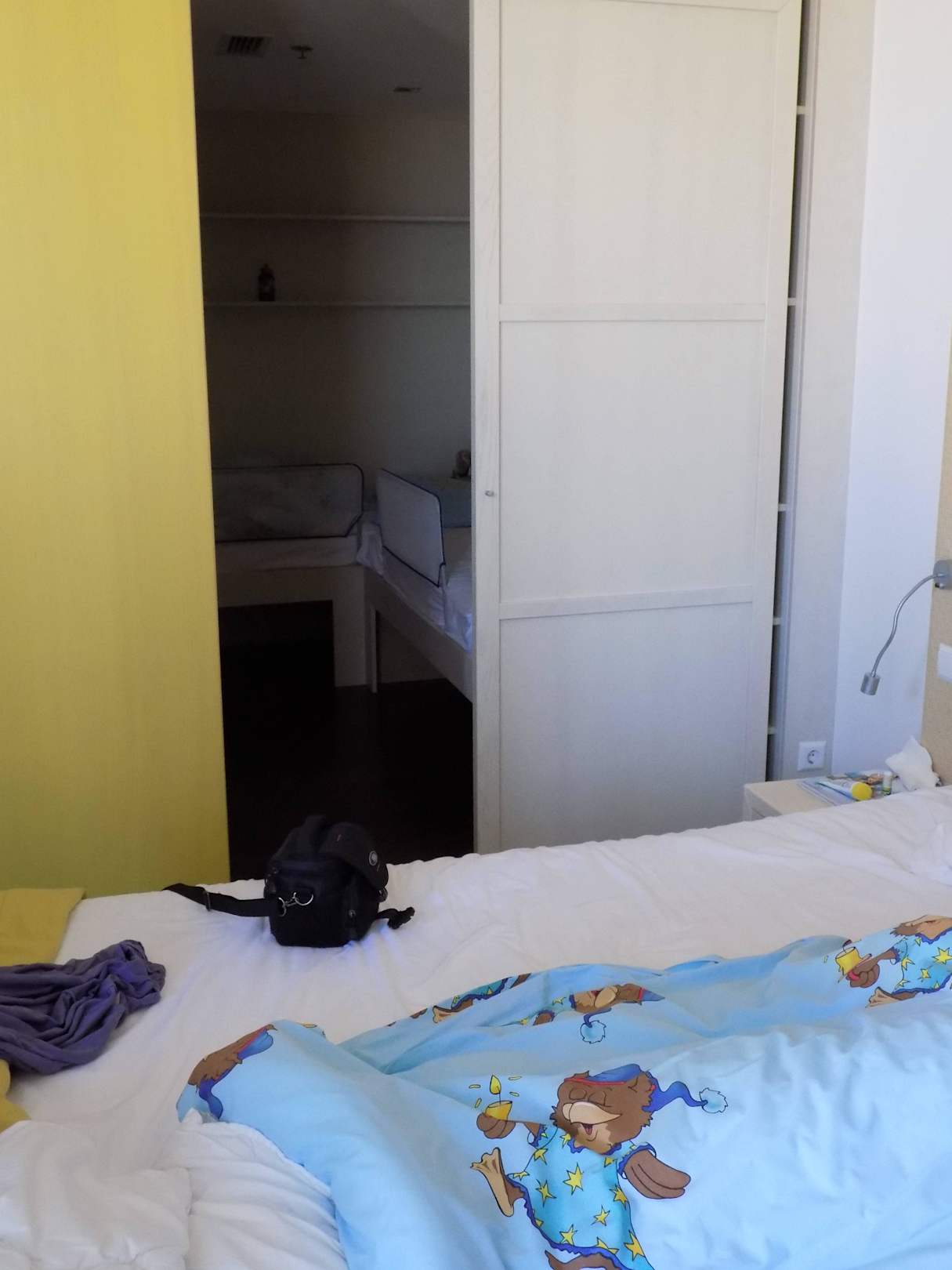 ZimmerIm Hintergrund ist der Raum für das Kind/die Kinder (2 Betten in unserem Zimmer mit angebrachten Bettgittern). Super!Es war ein getrennter Raum, den man mit einer Schiebetür abtrennen konnte.