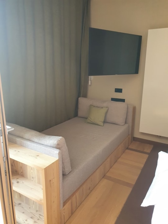 Neben dem Bett hatten wir auch noch eine Couch - und darüber ein schwenkbarer Fernseher.