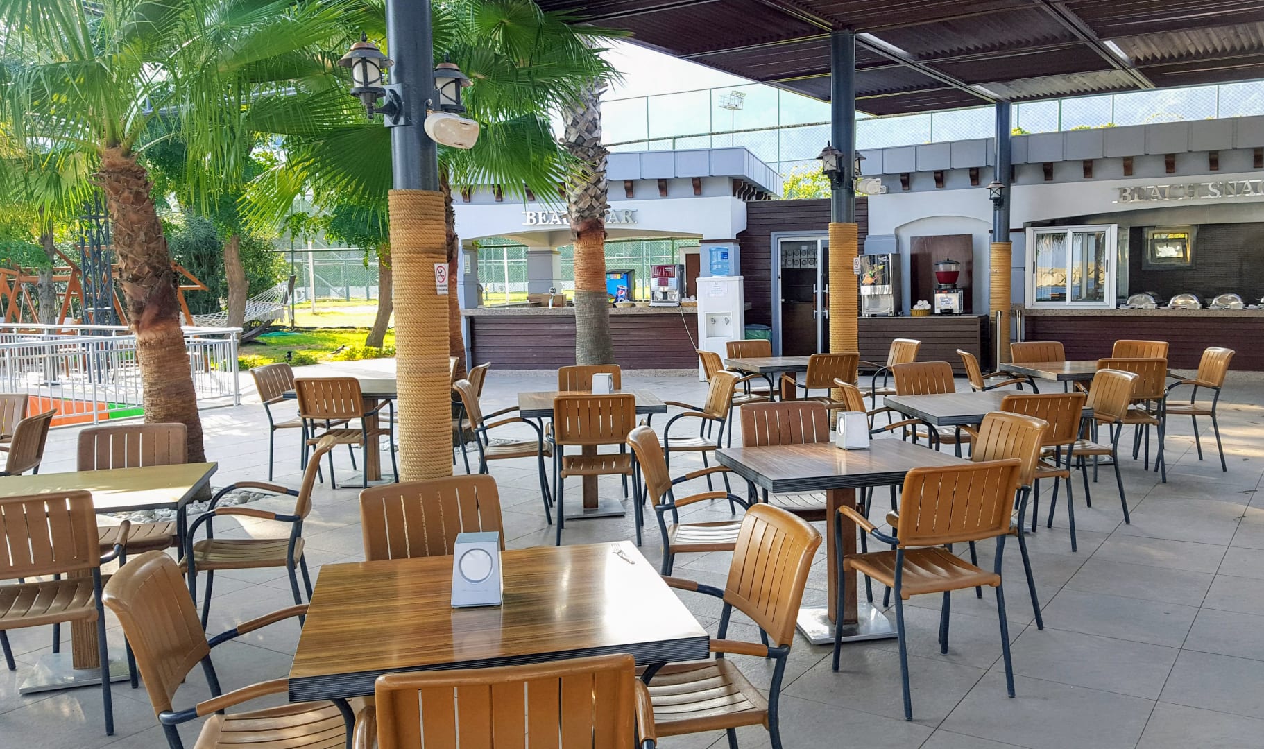 GastroBeach-Bar am Strand. Als All-Inklusive-Gast konnte man hier kostenlos Getränke und Snacks bekommen.