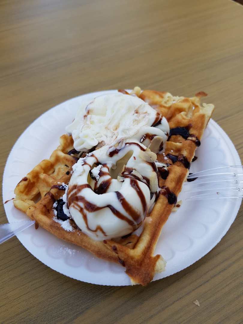 Ab 15 Uhr gibts am Pool auch Waffeln mit Eis